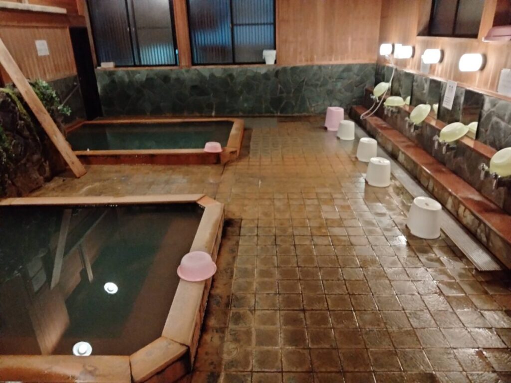 ちなみに手前が「ぬる湯」奥が「あつ湯」です。お隣の男湯の声が響いていました(笑)