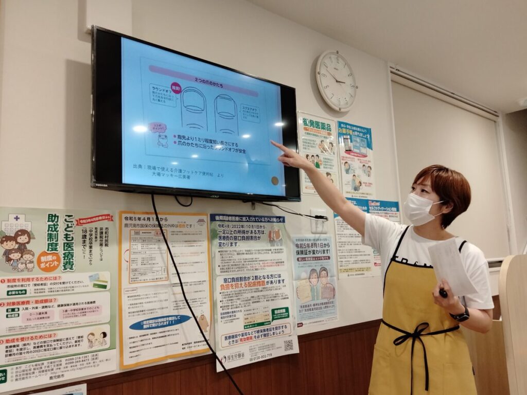 9月はフットケア体験会も開催されました。次回は10月18日を予定しており、内容は地域の薬局荒田八幡さくらホスさん(099-230-0627) までお問い合わせください。